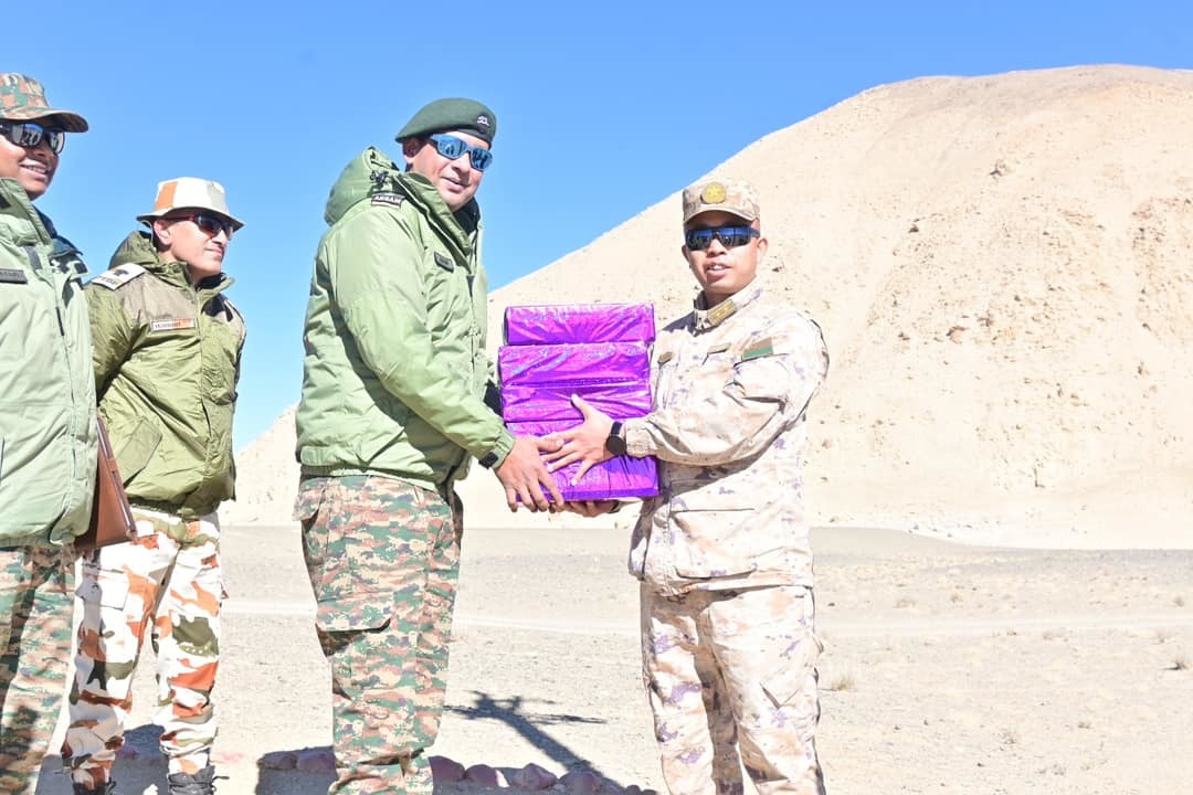 El Ministerio de Defensa indio compartió imágenes de soldados de ambos países intercambiando dulces en varios puntos de la frontera con motivo de la festividad india del Diwali.