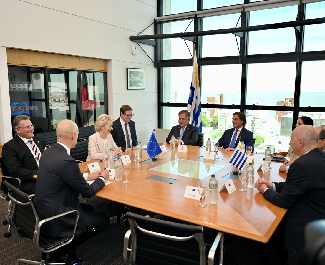 En el evento regional también participó la titular de la Comisión Europea, Ursula von der Leyen, una de las impulsoras de cerrar el convenio que aprovechó la ocasión para reunirse con los jefes de Estado del bloque y ultimar los detalles del TLC.