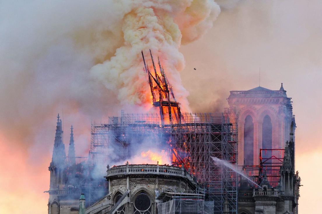El incendio de Notre Dame inició el 15 de abril de 2019 en el techo de la catedral y se prolongó durante más de tres horas. Más de 400 bomberos trabajaron para extinguir las llamas. Tras el siniestro, el templo quedó gravemente dañado.