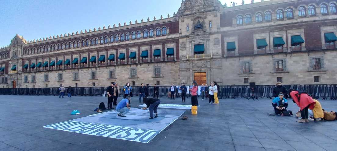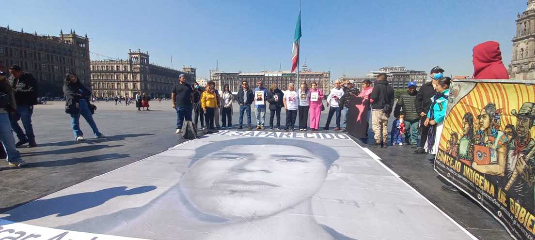 "Quiero volver a abrazar a mi hijo Oscar, me hace mucha falta, lo necesito, quiero saber de él", dice ella en plena mañana de sol, en el Zócalo de Ciudad de México, donde ha convocado a personas solidarias y a familiares de personas desaparecidas para colocar un cartel grande –de 4 por 6 metros– con el rostro de Oscar, mirando al Palacio Nacional.