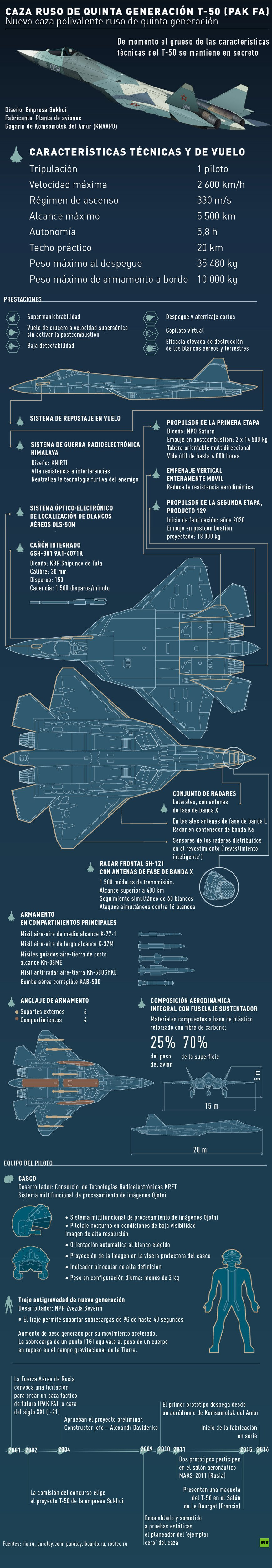 Anteriormente designado como T-50 (PAK-FA), el avión tiene baja visibilidad en los equipos de detección, velocidad de crucero supersónica y puede maniobrar con grandes sobrecargas.