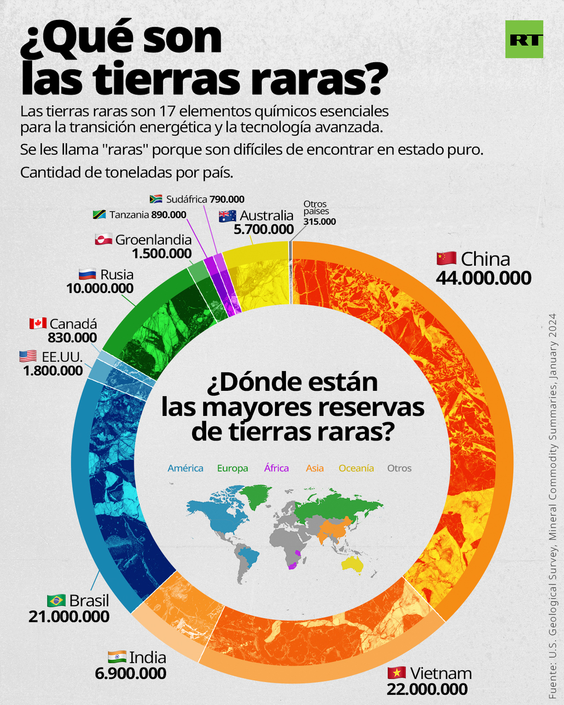 - Ucrania tiene una amplia reserva de tierras raras. Según la ONU, el país posee yacimientos de 21 de los 30 elementos de esas sustancias, definidas por la Unión Europea como "materias primas críticas". Entre ellos están el cobalto, el escandio, el grafito, el tantalio, el niobio y otros. Las tierras raras son esenciales para muchas industrias de alta tecnología, como la electrónica, la energía verde y la medicina.