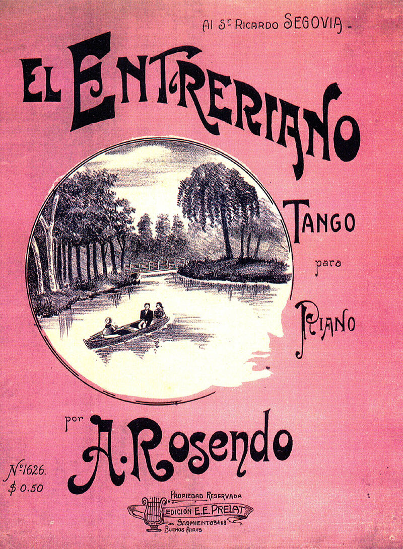 Tanto es así que la primera partitura conocida de tango pertenece a Rosendo Mendizábal (1868-1913), un destacado pianista y compositor de descendencia afro-argentina, proveniente de una familia acaudalada. Mendizábal es autor de El Entrerriano (1897), y forma parte del incipiente movimiento cultural tanguero que integraron poetas, músicos y bailarines llamado 'Guardia Vieja', que hoy da nombre a una calle del arrabalero barrio de Almagro.