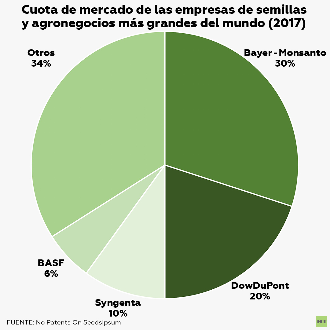 Las principales empresas dedicadas a la venta de semillas de vegetales transgénicas son las multinacionales: Monsanto-Bayer, DowDuPont, Syngenta, y BASF. De hecho, solo las dos primeras empresas, fruto de fusiones en los últimos años, controlan la mitad de los mercados mundiales de semillas, según la ONG No patents on seeds.