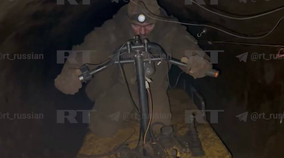 Además, los soldados han descubierto cómo desplazarse por la tubería: en "carretillas" especiales. En el video, aparece uno de estos vehículos y se muestra cómo conducirlo a través del estrecho túnel.