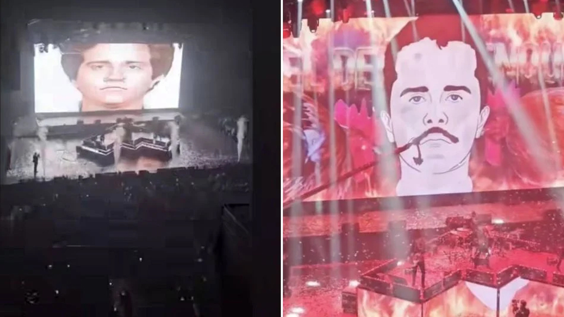 Las imágenes aparecieron mientras la banda interpretaba un corrido en su honor, provocando la ovación del público. Tras la difusión de los videos en redes sociales, la polémica escaló rápidamente y se denunció que se hiciese apología del delito y se glorificase la figura de uno de los criminales más buscados del país.