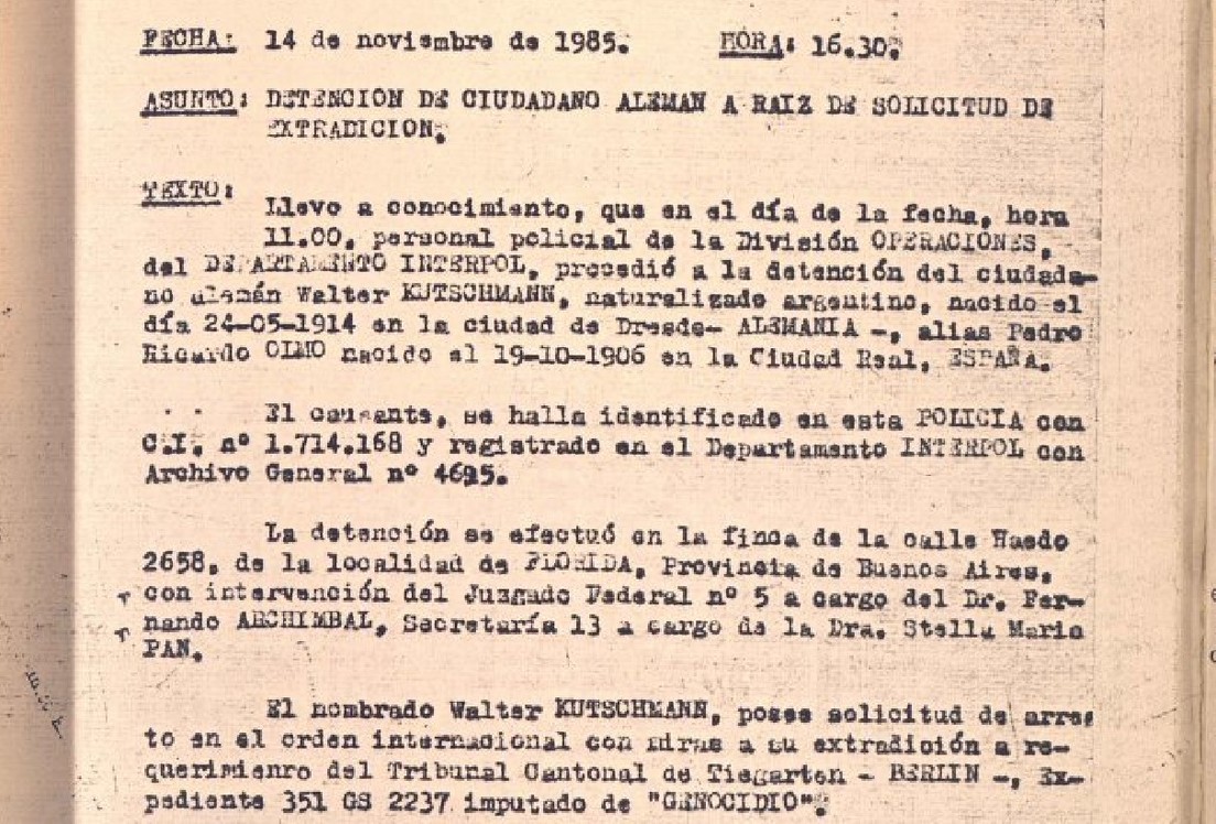 Así, Kutschmann logró una década más de impunidad y libertad. No se supo nada de él, mucho menos durante la dictadura militar. Fue hasta noviembre de 1985, 10 años después de que Serra le gritó su nombre, cuando se informó que agentes de Interpol con una solicitud de extradición de Alemania por el delito de genocidio, habían capturado al fugitivo nazi en una finca de la localidad de Florida, provincia de Buenos Aires.