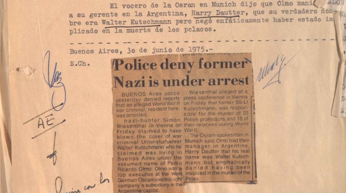 Luego que Serra publicó la noticia de Kutschmann, el gobierno argentino en manos de María Estela Martínez de Perón, revocó la ciudadanía a Olmo. En paralelo, la Policía Internacional (Interpol, por sus siglas en inglés), solicitó su arresto y las autoridades locales procedieron a buscarlo pero el hombre volvió a desaparecer.