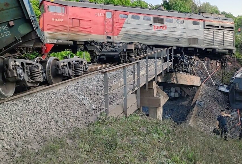 - En paralelo, en la provincia de Kursk, la locomotora de un tren de carga en tránsito cayó la madrugada de este domingo desde un puente ferroviario dañado a una carretera
