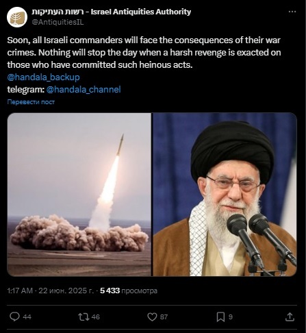 La cuenta de la Autoridad de Antigüedades de Israel fue hackeada por piratas informáticos iraníes, que han publicado un contundente mensaje para los comandantes militares del Estado hebreo.