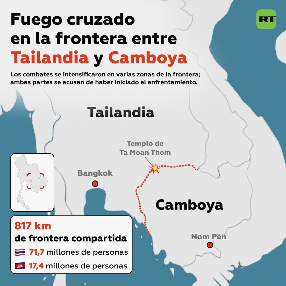 La primer confrontación se produjo en la madrugada de este jueves en una zona cercana al antiguo templo de Ta Moan Thom, ubicado en la frontera entre la provincia tailandesa de Surin y la camboyana de Oddar Mean Chey. El Ejército tailandés y el Ministerio de Defensa de Camboya acusaron a la otra parte de desplegar drones antes de avanzar hacia las posiciones enemigas y abrir fuego, recoge AP.