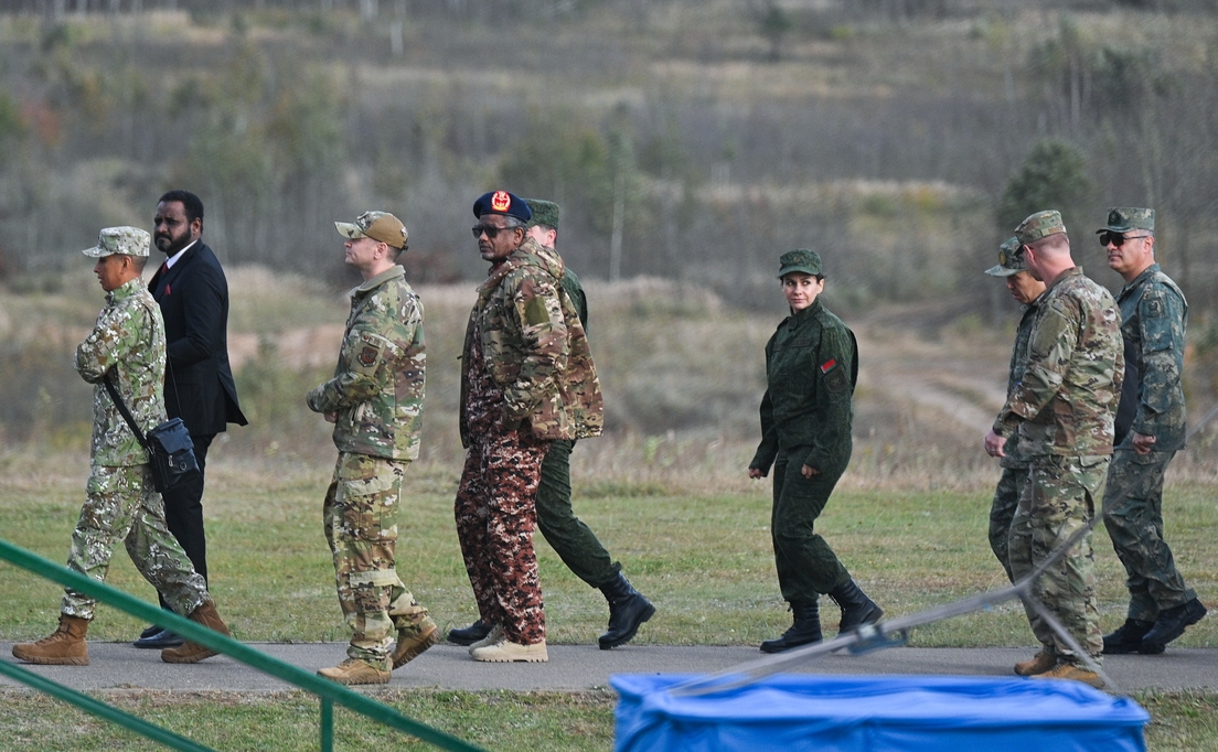 El Ministerio de Defensa bielorruso informó que su titular, Víktor Jrenin, se reunió con dos agregados militares estadounidenses en el campo de entrenamiento, donde los representantes de EE.UU. agradecieron formalmente la invitación a observar los ejercicios.