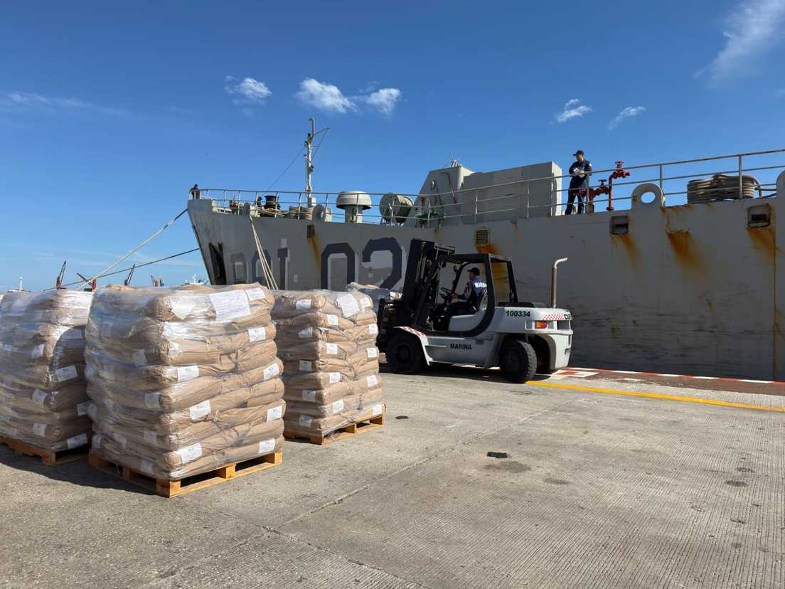 El buque Papaloapan transporta alrededor de 536 toneladas de alimentos y artículos básicos, entre ellos leche líquida, productos cárnicos, galletas, frijol, arroz, atún en agua, sardina, aceite vegetal y productos de higiene personal. Mientras que el buque Isla Holbox lleva poco más de 277 toneladas de leche en polvo.