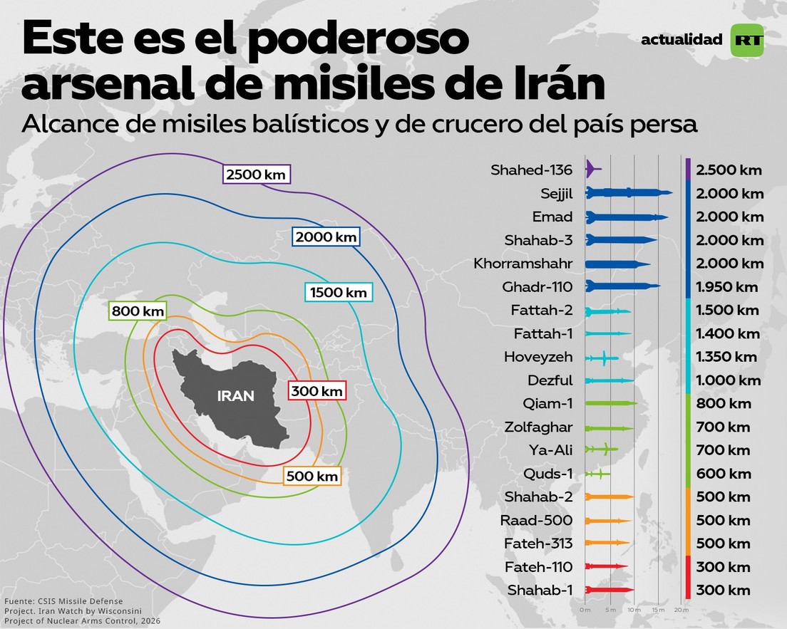 Irán ya ha lanzado más de 500 misiles balísticos en ataques de represalia tras el inicio de la agresión de EE.UU. e Israel contra la República Islámica, de acuerdo con los datos del Mando Central estadounidense (Centcom). Los misiles iraníes lograron burlar el sistema de defensa aérea de Israel y otros países de Oriente Medio, impactando contra diferentes objetivos israelíes y estadounidenses.
