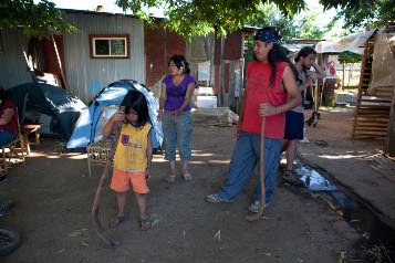 Aquí todos se llaman entre ellos “lamién” (hermano, hermana), aquí cada noche toda la familia se reune en la ruca (la casa de barro y madera de los mapuche) a beber mate de una sola calabaza, pasándosela de uno a otro hasta que se termina. Aquí todavía persiste la esperanza de obtener el derecho a la autodeterminación. La gente de la tierra necesita su tierra, nada más.