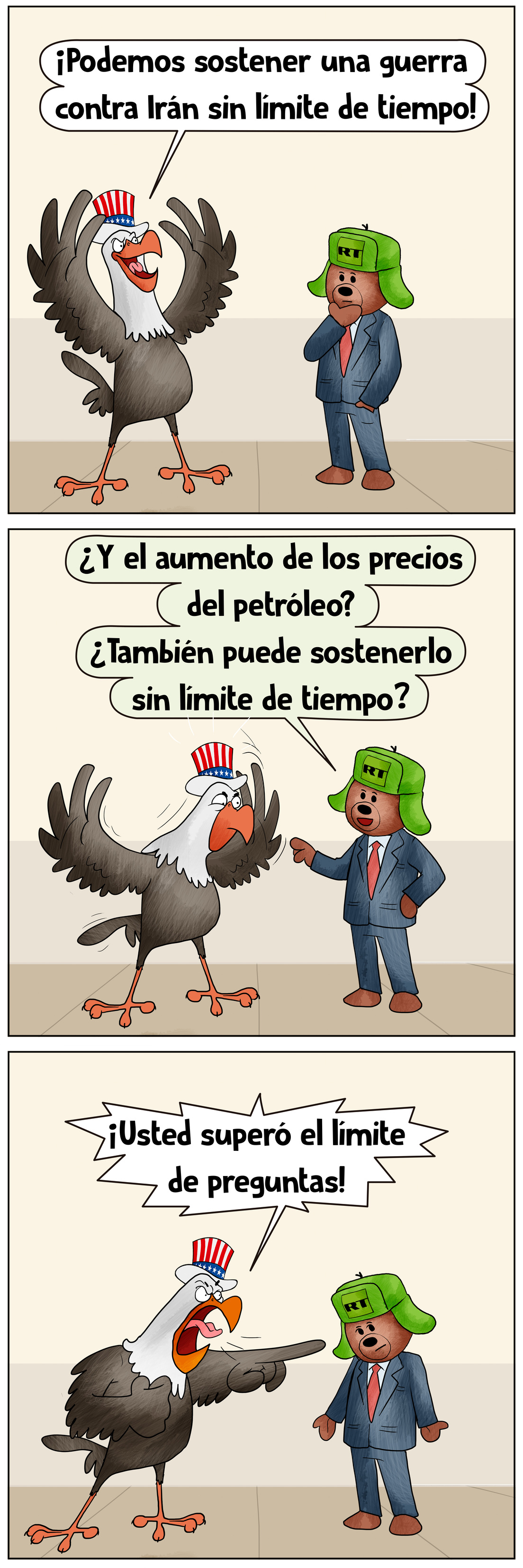 Donald Trump presume de un poder ilimitado en su agresión contra Irán, pero una simple pregunta de nuestro osito reportero lo dejó ilimitadamente irritado 😅 🤷