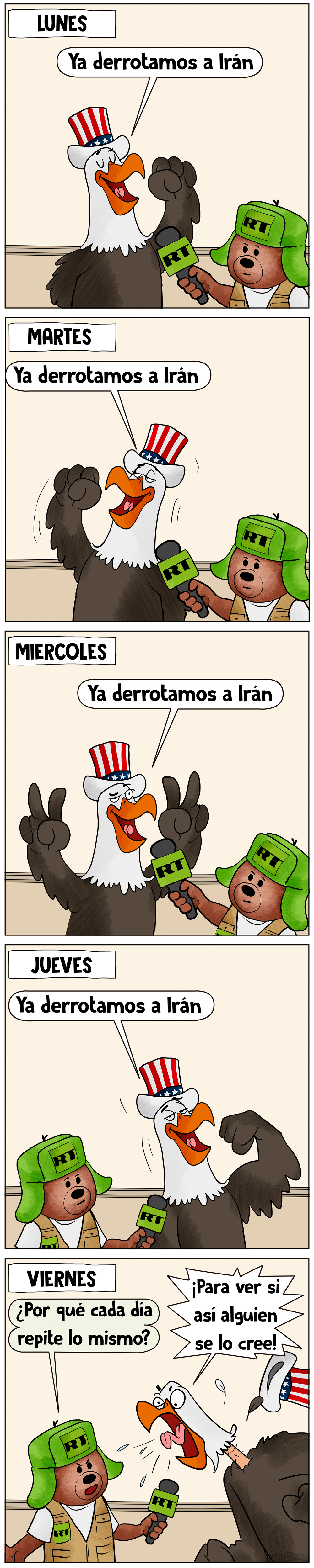 Donald Trump anuncia todos los días que EE.UU. ya derrotó a Irán. Y tiene un excelente motivo para hacerlo, como averiguó (muy a su pesar) nuestro afilado osito-reportero 😅
