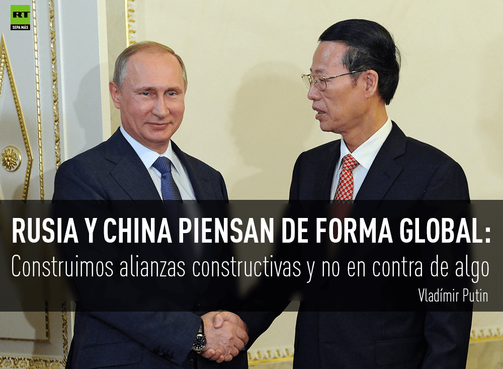 Rusia y China no están construyendo una alianza en contra de nadie. Estos países no están creando ningún bloque militar y Moscú nunca actúa desde la posición de fuerza, aseguró Vladímir Putin. Asimismo, el mandatario ruso declaró que "Dios ordenó a Rusia desarrollar relaciones con China".