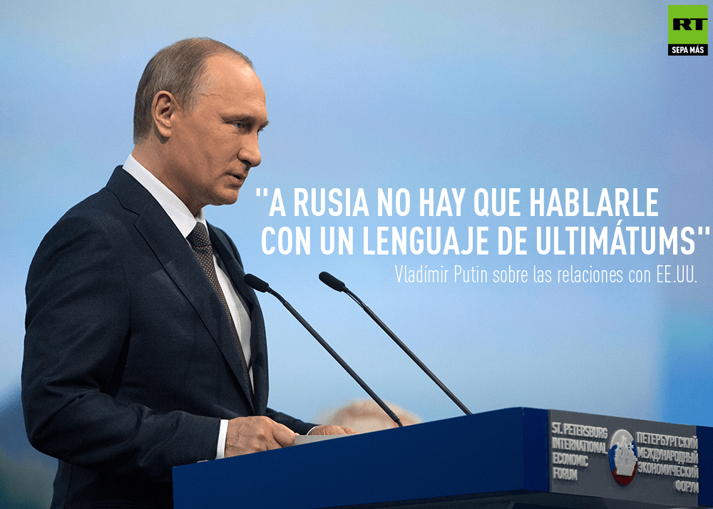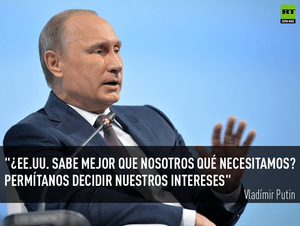 "¿EE.UU. sabe mejor que nosotros lo que necesitamos? Permítanos a nosotros decidir sobre nuestros intereses", afirmó el presidente ruso. EE.UU. debe abandonar sus intentos de imponer a Rusia sus decisiones y darle la oportunidad de decidir sobre sus propios intereses, anunció.