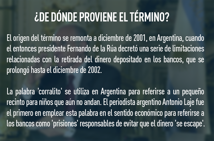 El término 'corralito' se utiliza para referirse a una decisión o una serie de medidas económicas cuyo objetivo es evitar la salida masiva de capitales de los bancos, con el fin principal de evitar la quiebra bancaria.