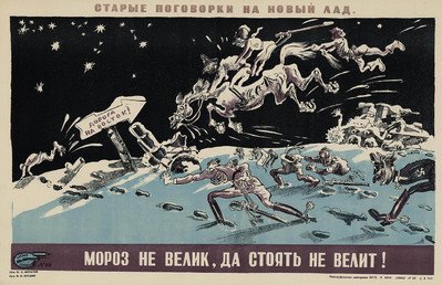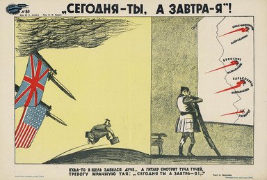 Algunos carteles diseñados por una alianza de artistas soviéticos son un buen ejemplo de cómo la población, incluso de los territorios asediados por la Alemania nazi y sus países satélites, hacía frente al empuje ideológico del enemigo. Este colectivo de pintores y caricaturistas, denominado 'Boyevói Karandash' ('lápiz de combate'), realizaba su trabajo creativo en la ciudad de Leningrado desde el inicio de la Gran Guerra Patria y en pleno sitio de las tropas alemanas y finlandesas.