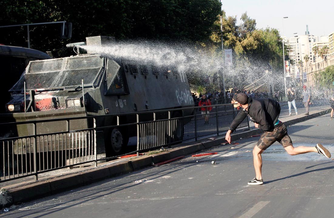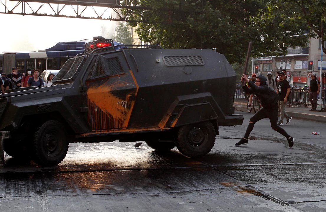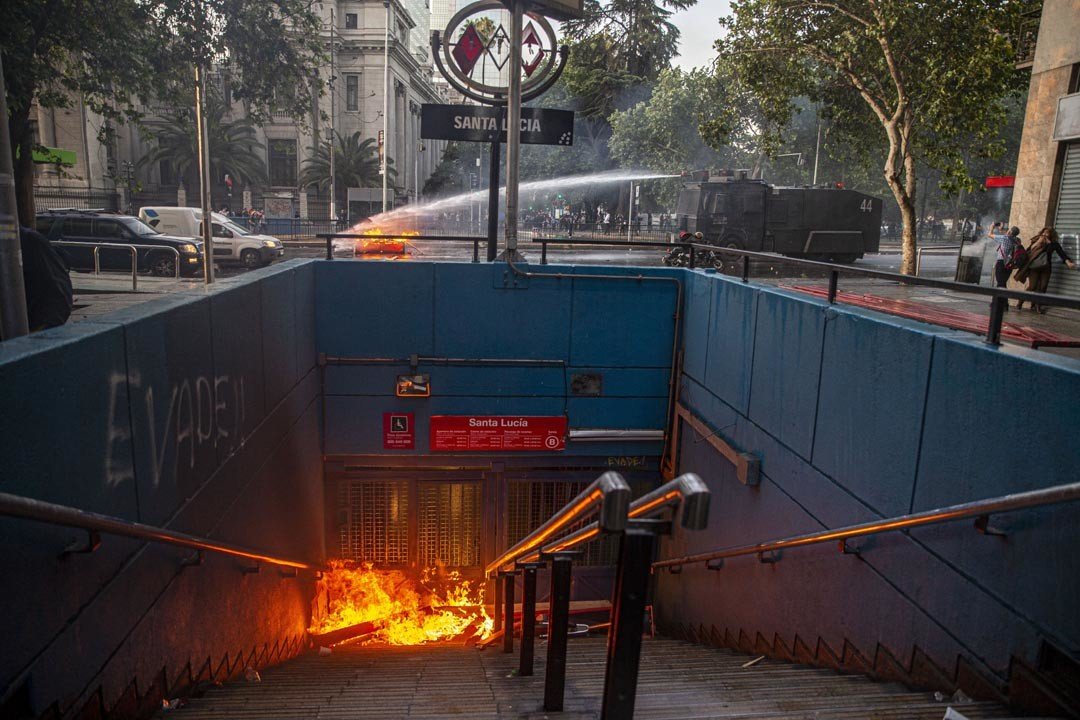 El presidente chileno, Sebastián Piñera, ha decretado este viernes el estado de emergencia ante el caos que se registra en la capital, Santiago en Chile, escenario de incendiarias protestas de estudiantes contra el alza del precio del pasaje en la red de transporte. Para mostrar su repulsa, los manifestantes se saltan los vallados y pasan al metro sin pagar. Sin embargo, la dimensión más agresiva de la protestas se tradujo en el incendio de estaciones de metro, buses y edificios.