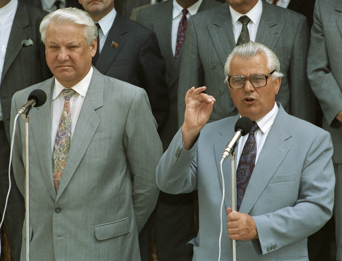El jefe del departamento ideológico y secretario del Comité Central del Partido Comunista de Ucrania, Leonid Kravchuk, conocido por su capacidad de "caminar bajo la lluvia pasando entre las gotas sin mojarse", antes de llegar a ser el primer presidente de la Ucrania independiente, en 1991, prometió a sus electores "compatriotas rusos": "impedir cualquier discriminación nacional (...), mantener todos los lazos con Rusia, (...) juntos poner fin a las provocaciones que siembran enemistad entre los rusos y los ucranianos y (...) construir una Ucrania como casa común de los rusos, ucranianos y otras nacionalidades que la habitan". En 1988, Kravchuk, siendo el más alto dirigente de Ucrania soviética, combatía "el nacionalismo burgués ucraniano". En 2015, encabezó el movimiento social 'Ucrania hacia la OTAN' y en 2016 dijo que "el pueblo ucraniano era el sepulturero de la URSS".