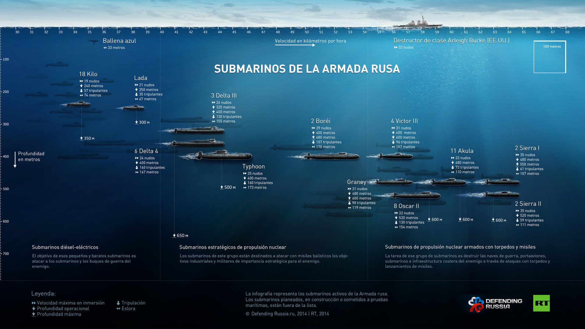 Actualmente, la Armada de Rusia cuenta con 60 submarinos nucleares, una decena de los cuales son estratégicos y más de 30 son de ataque; el resto son diésel y otros sirven para propósitos especiales.