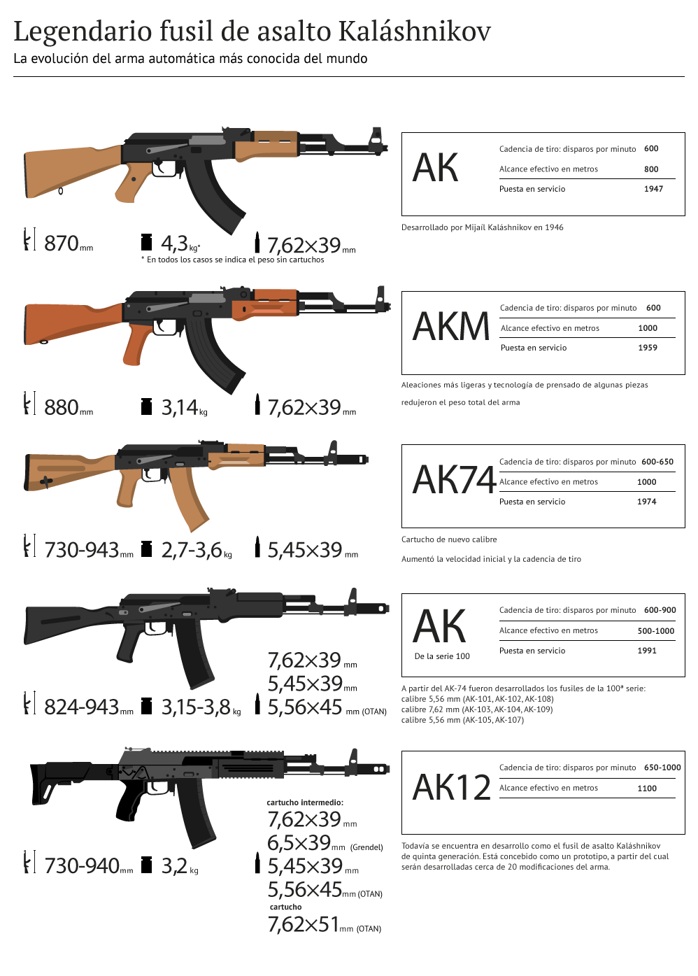 Calibres: 7,62 mm y 5,45 mm
