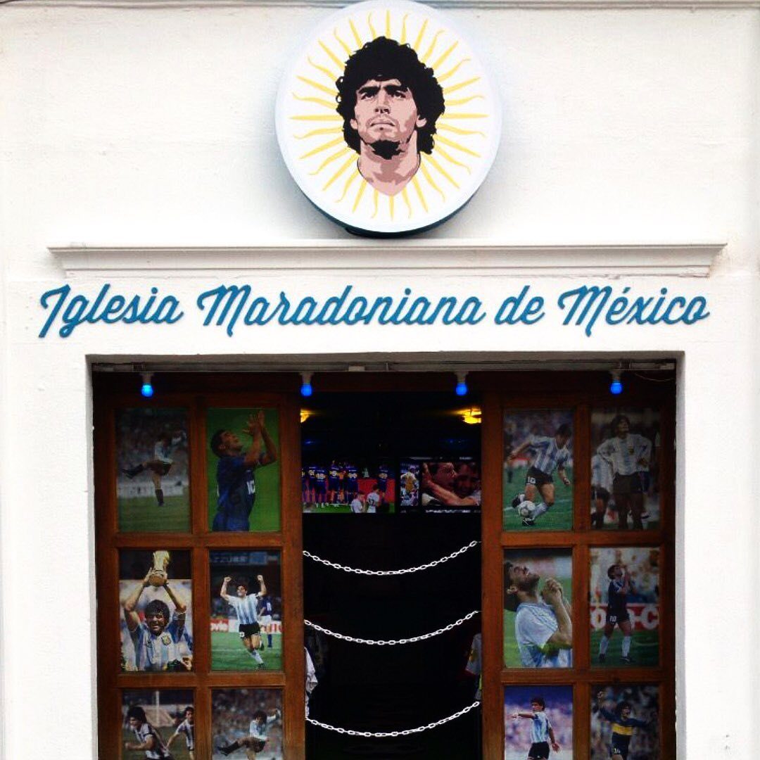 La primera Iglesia maradoniana, fundada por el argentino Marcelo Buchet, llegó a México en junio de 2021 con el fin de difundir las hazañas del futbolista y congregar a los fanáticos en un sólo recinto. Además de liturgias, la organización también transmite partidos y realiza subastas.